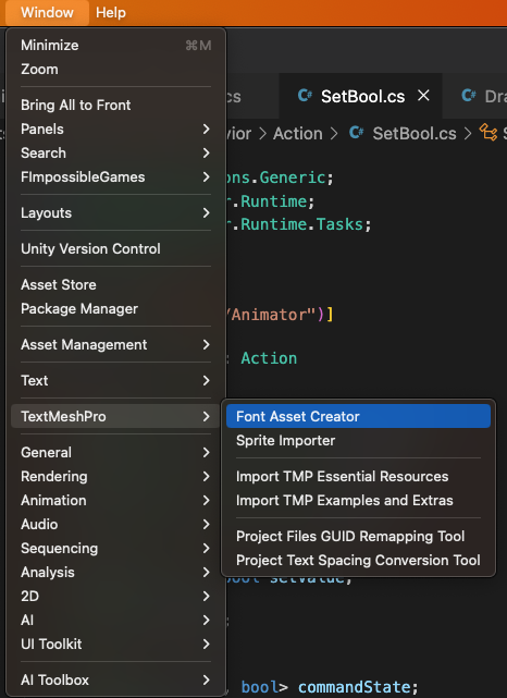 - 'Font Asset Creator'를 클릭합니다.