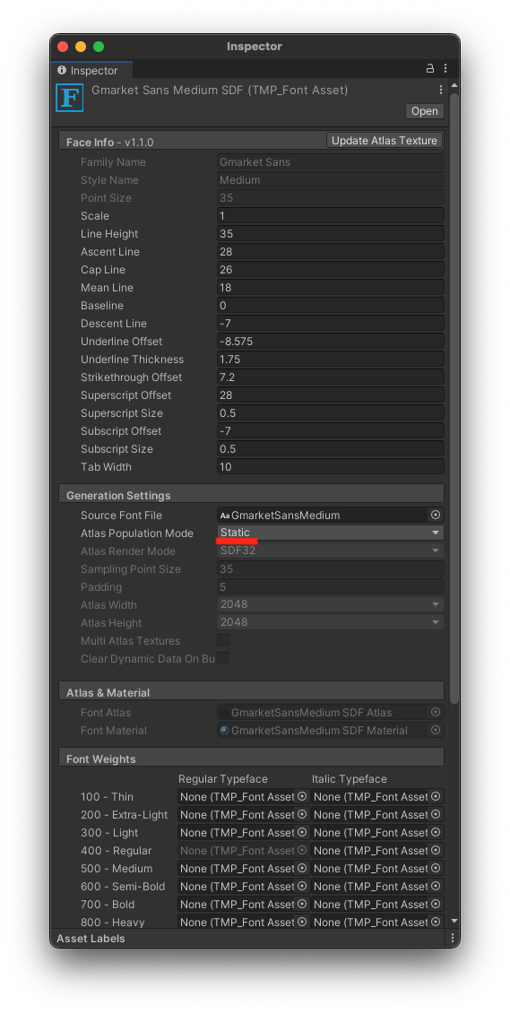 폰트 에셋 생성기 설정