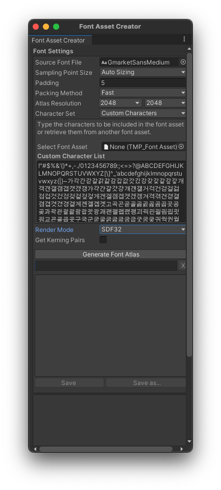 'Atlas 해상도'를 설정하는 옵션을 찾을 수 있습니다. 이것은 글꼴의 품질을 제어합니다. 해상도가 높을수록 글꼴이 더 선명하고 선명해집니다. 경험상 모바일에서는 2048로 설정하면 충분하고 PC에서는 4096으로 설정하는 것이 좋습니다.