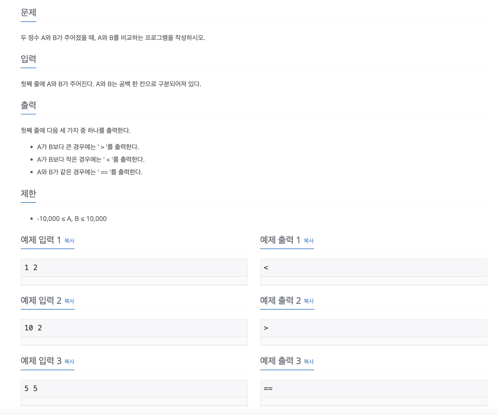 문제에 A,B가 주어진다고 써있지만 예제 입력이라는 부분이 있는걸 보고 이와같은 코드를 작성했다.