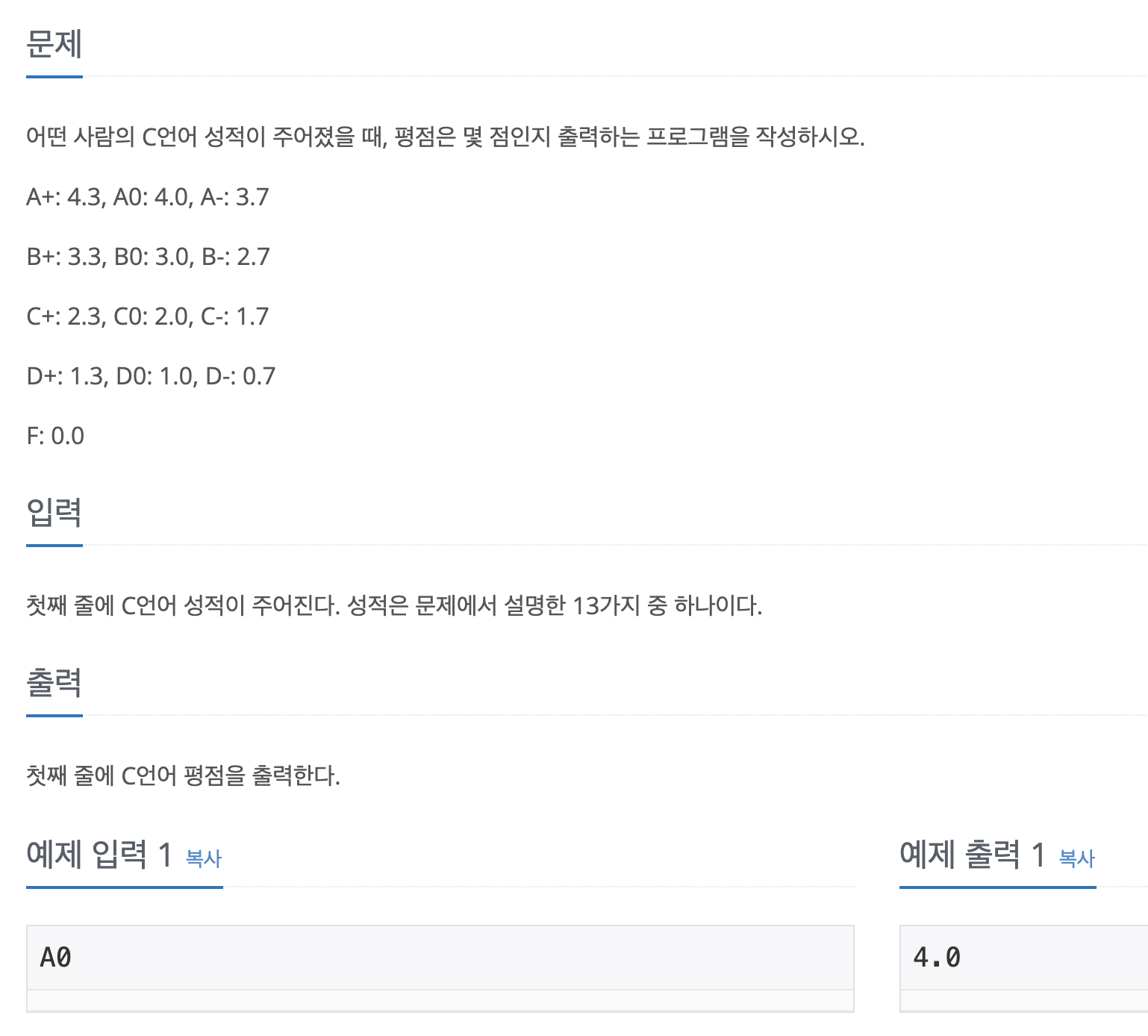| 백준 알고리즘 25206번 : 너의 평점은 (3) | 2023.09.26 |