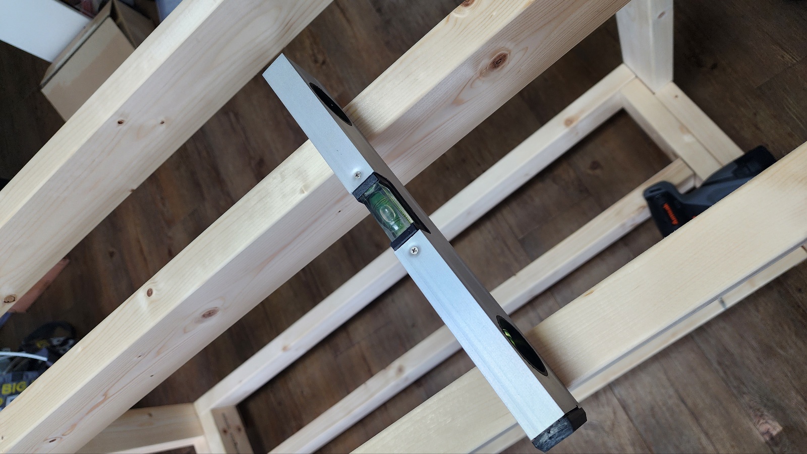 피스를 여러번 끼웠다 뺏다하며 겨우 맞춘 수평