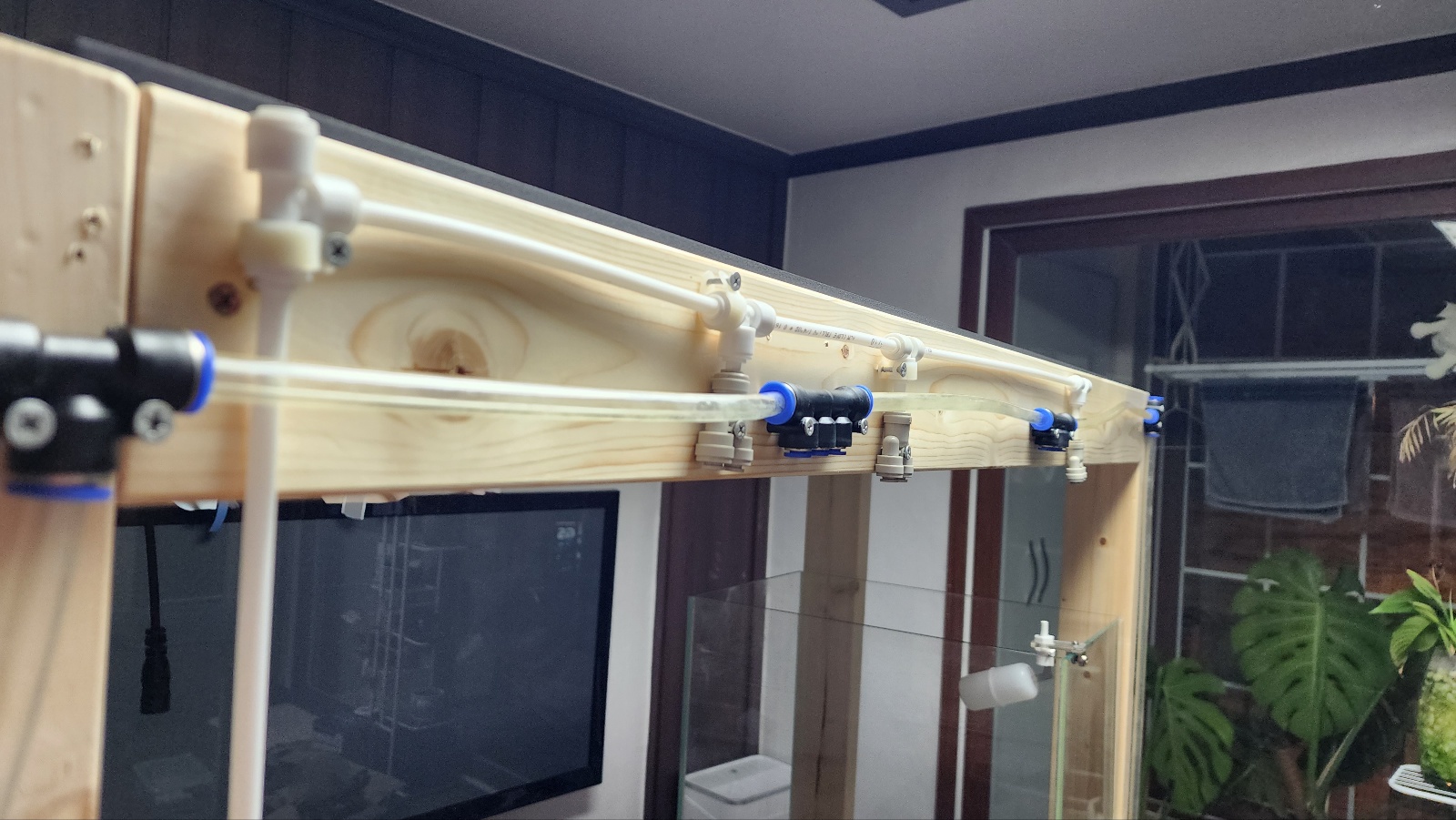 원터치 피팅기도 Y자 모양을 사서 깔끔하게 두개씩 라인을 빼려고 했는데 성격도 급하고 택배비 아까워서 전에 쓰던 3구 분배기 4개를 설치했습니다.