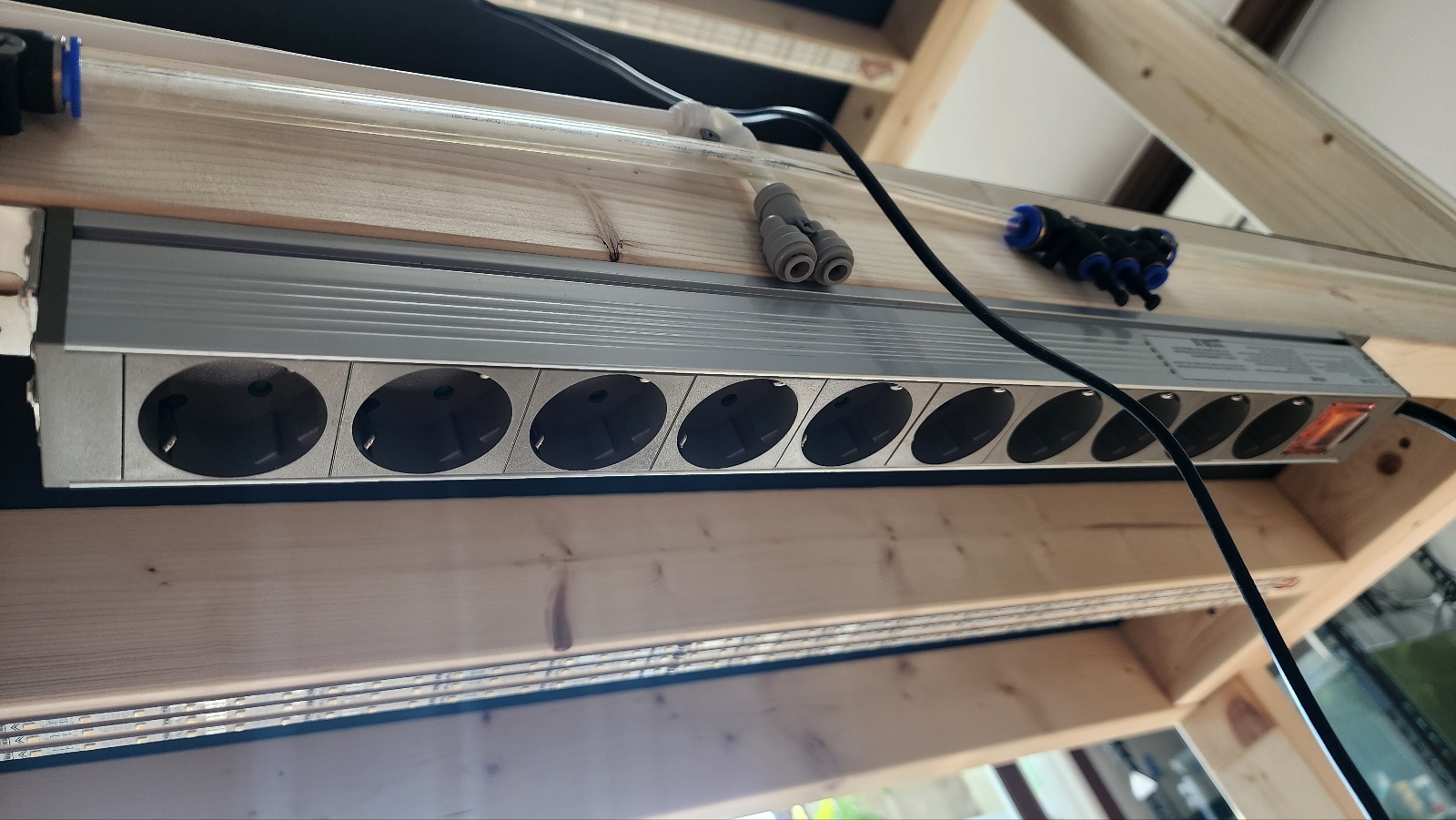 쿠팡으로 주문한 알루미늄 멀티탭을 축양장 중간에 설치해주고