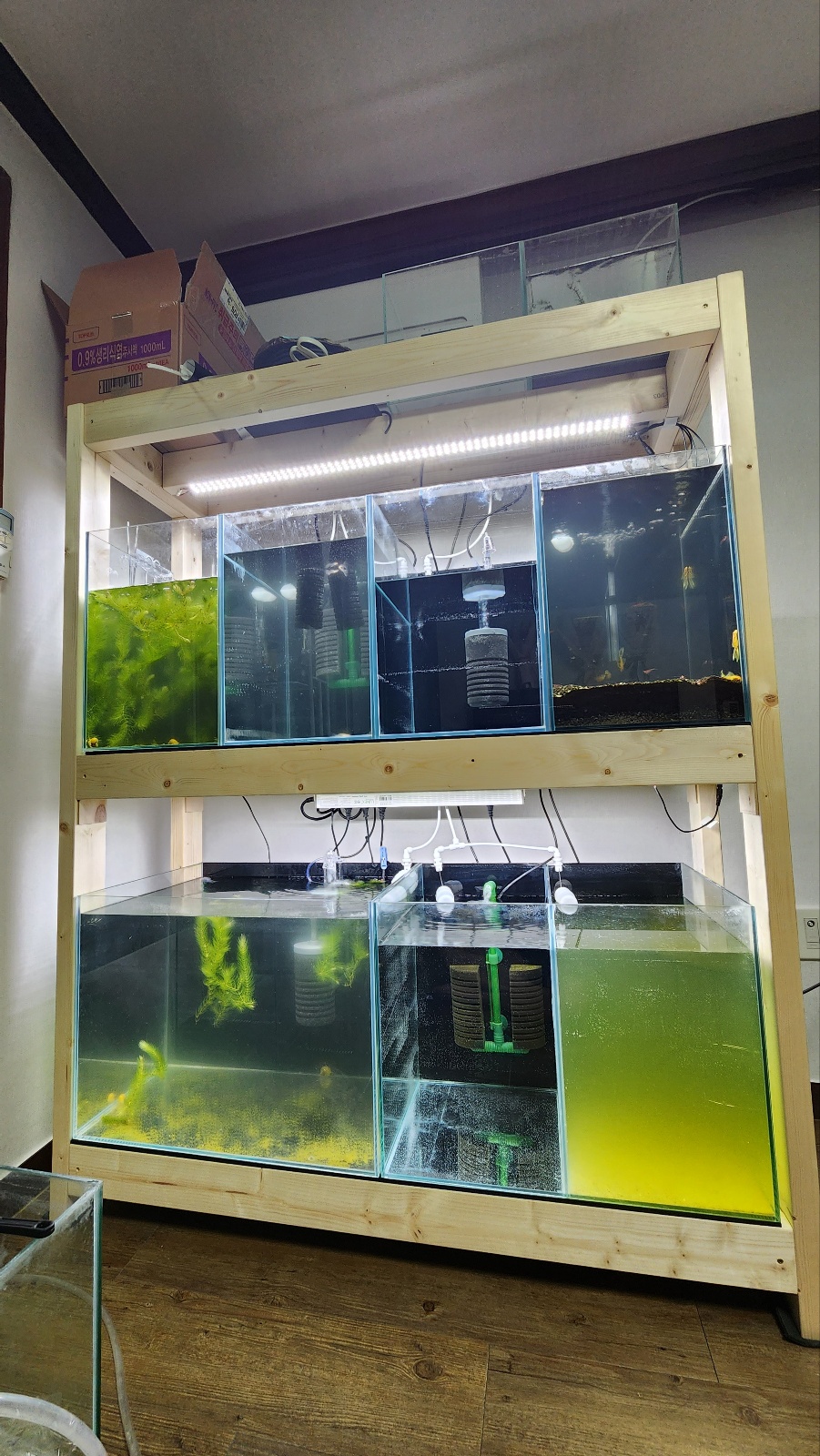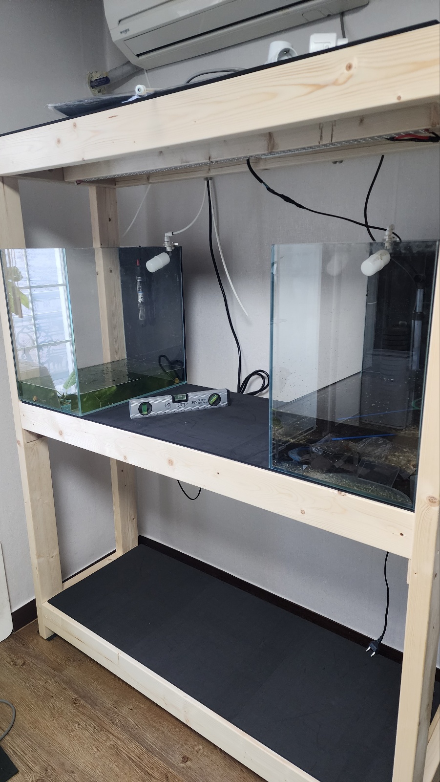 2자 어항을 물을 어느정도 빼고 옮겨서 자리 맞춰놨는데 생각해보니 백스크린 작업을 안했다...😭😭😭