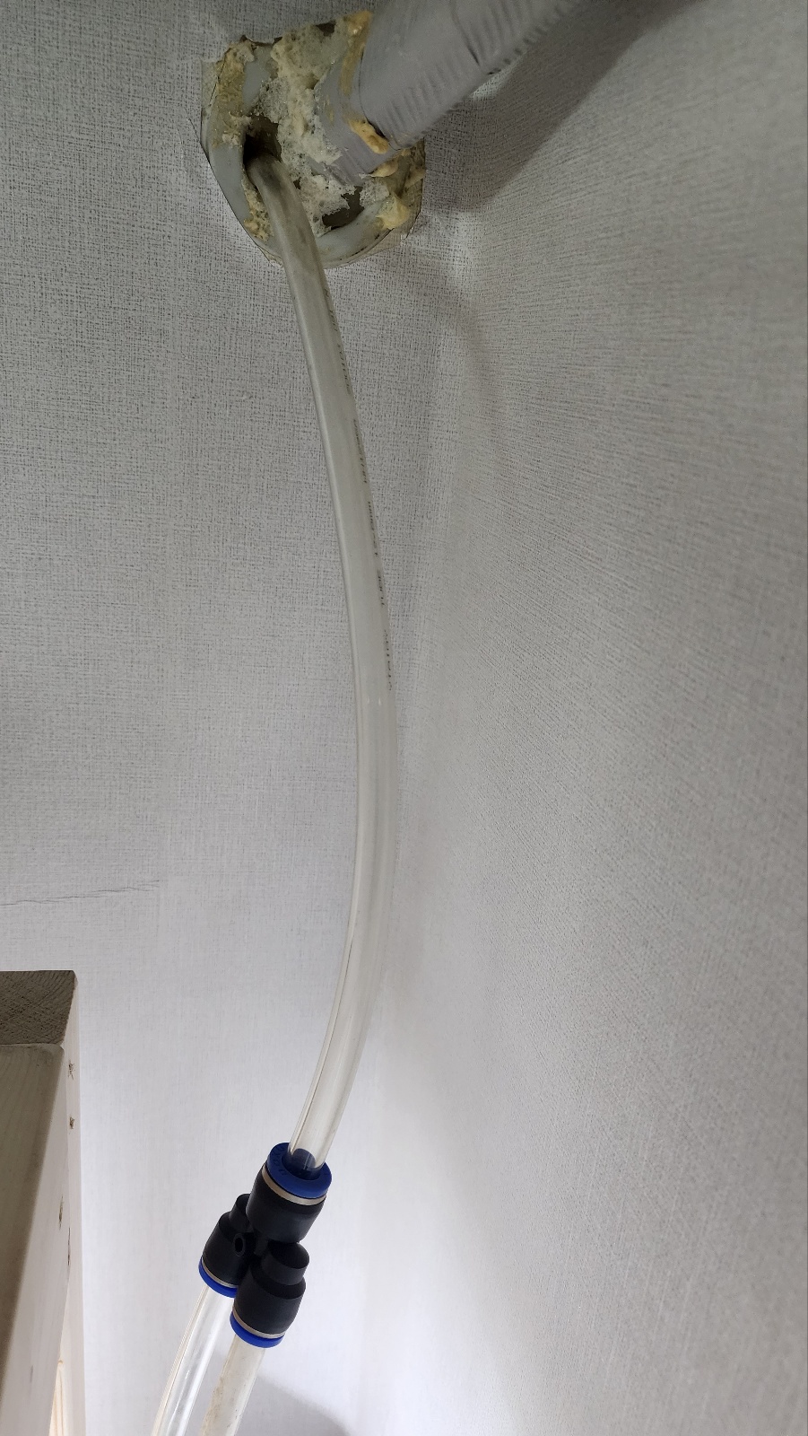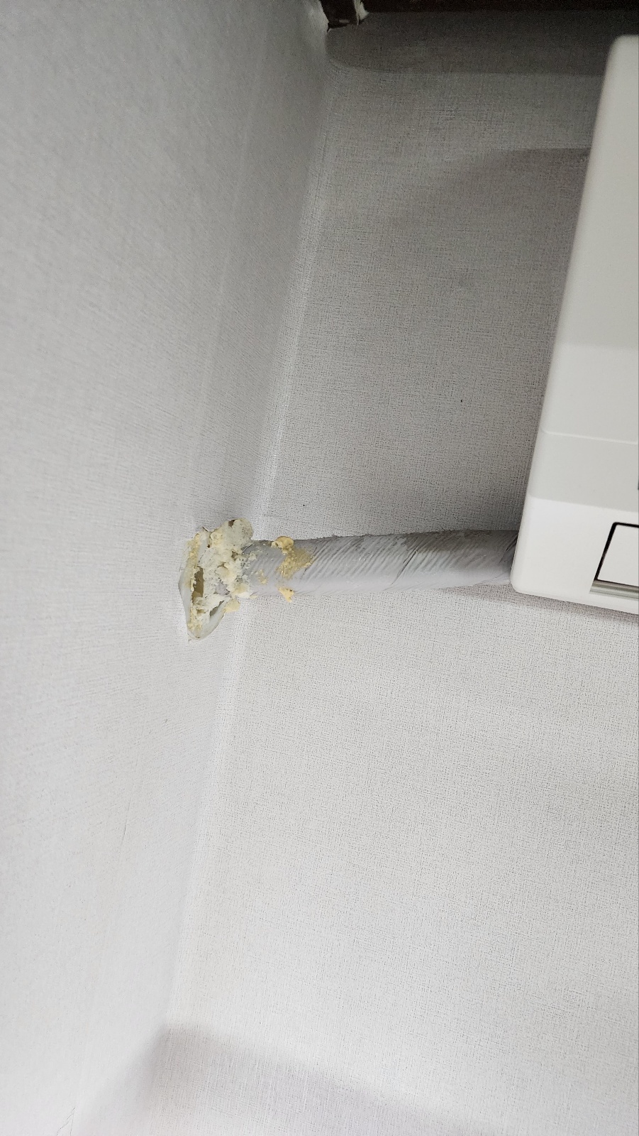 에어컨 호스 통로로 에어호스를 집어 넣어 브로와를 베란다에 설치하고 빈틈에는 우레탄폼을 쏴 단열할 생각입니다