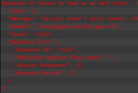 "Message": "Ad unit doesn't match format.",