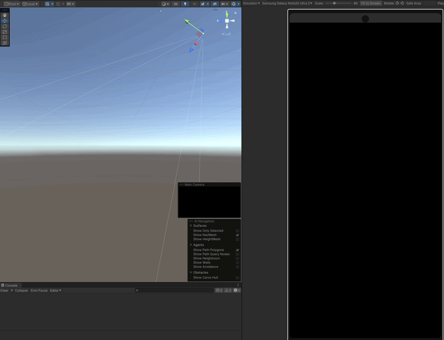 예를 들어, 카메라의 시야 밖에 있는 화면 왼쪽 끝을 광선으로 변환하려고 하면, Camera.main.ScreenPointToRay 함수는 다음과 같은 오류를 발생시킵니다.