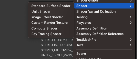 Unity에는 다양한 종류의 쉐이더가 있으며, 일반적으로 다음과 같이 분류됩니다.