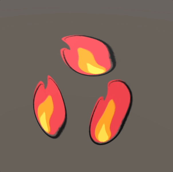 - 불꽃: 불 텍스쳐를 애니메이션하여 불꽃의 타오르는 모습을 표현합니다.