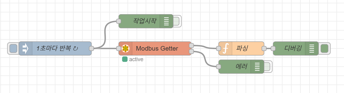 - 팔레트에서 Modbus Getter 노드를 워크스페이스로 드래그