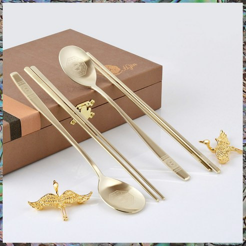 [H.jin NEW비단쌍학 티타늄골드 수저세트]는 주는 사람도 받는 사람도 모두 만족할 수 있는, 그야말로 후회 없는 선택이 될 거예요. 특별한 날, 소중한 분께 감사의 마음과 함께 건강과 행복을 선물하고 싶다면 이 제품을 강력 추천합니다!