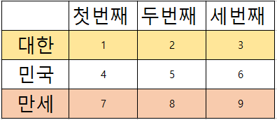 만세가 3번째 순서이지 않냐라고 생각하실수도 있는데요 0부터 시작해서 그렇습니다.... 0,1,2 고로 2 가 만세입니다