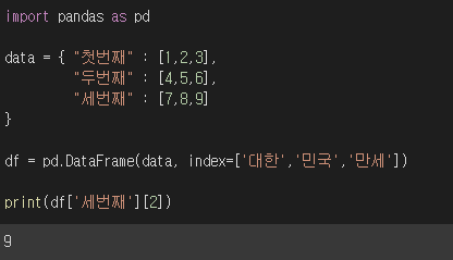 df['첫번째'][0] 는 첫번째 열의 0번 순서를 나타낸것입니다.