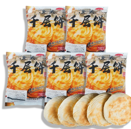 - 중국식 버거 스타일: 잘 구운 천층병을 반으로 갈라 볶은 부추/숙주나물, 가지볶음, 짜사이, 떡갈비, 불고기 등을 넣어 먹기