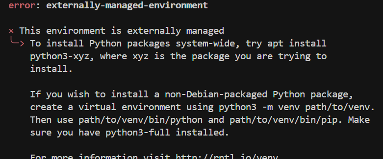 ╰─> To install Python packages system-wide, try apt install...