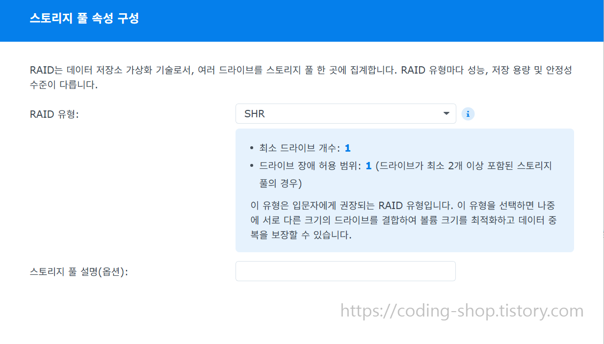#NAS #RAID #SHR #시놀로지 #Synology #스토리지풀 #RAID0 #RAID1 #JBOD #NAS구축 #NAS초보