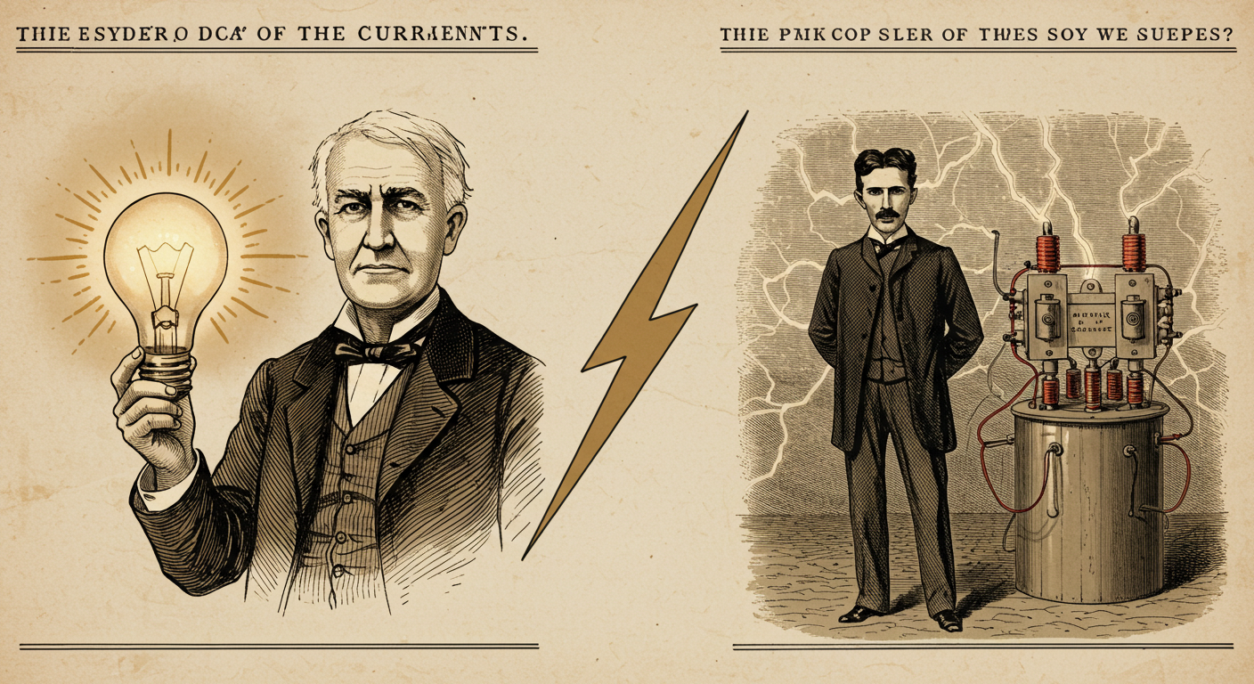 19세기 후반, 발명왕 에디슨은 직류(DC) 시스템을, 천재 과학자 테슬라는 교류(AC) 시스템을 지지하며 치열한 경쟁을 벌였습니다. 이를 '전류 전쟁(War of the Currents)'이라고 부릅니다.
